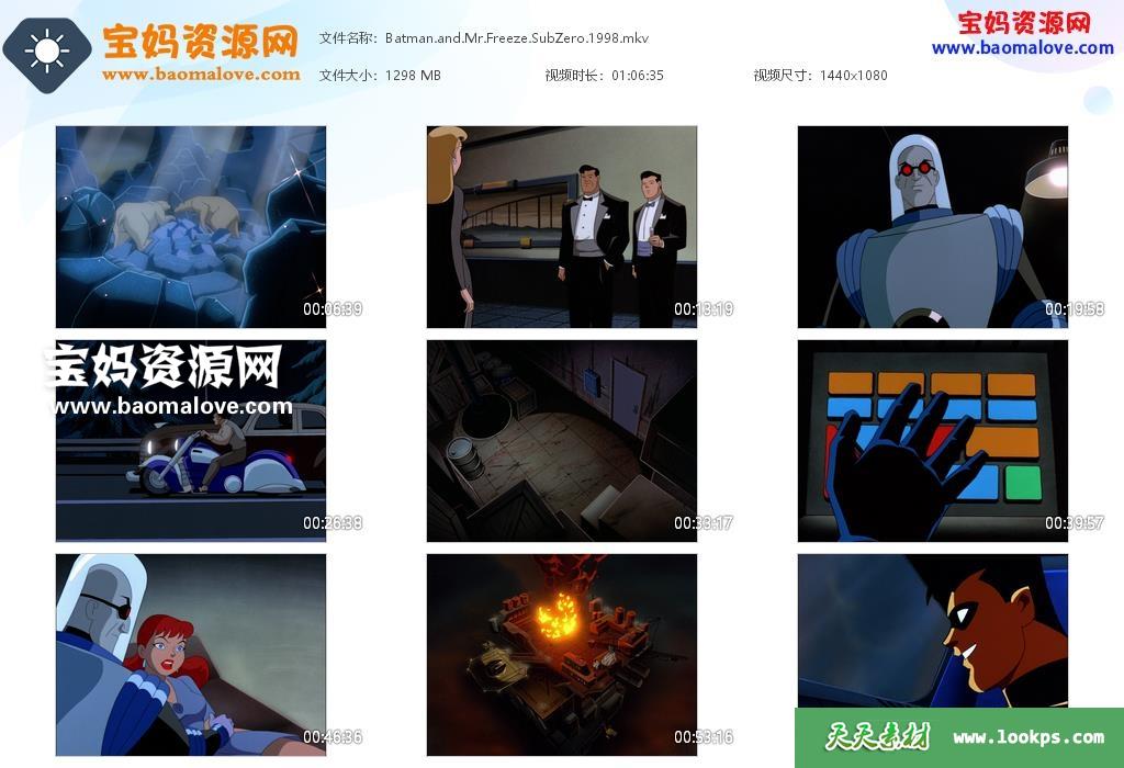 天天资源网收录的动画电影《蝙蝠侠大战急冻人 Batman & Mr. Freeze: SubZero》,英语发音,内置英文字幕(可以下载后使用播放器设置字幕字体大小颜色或者关闭字幕);资源大小约1.26G,1080P高清MKV视频格式,可以在电视机或电脑、平板、IPAD、早教机、手机等各种智能设备播放,提供百度云网盘下载。