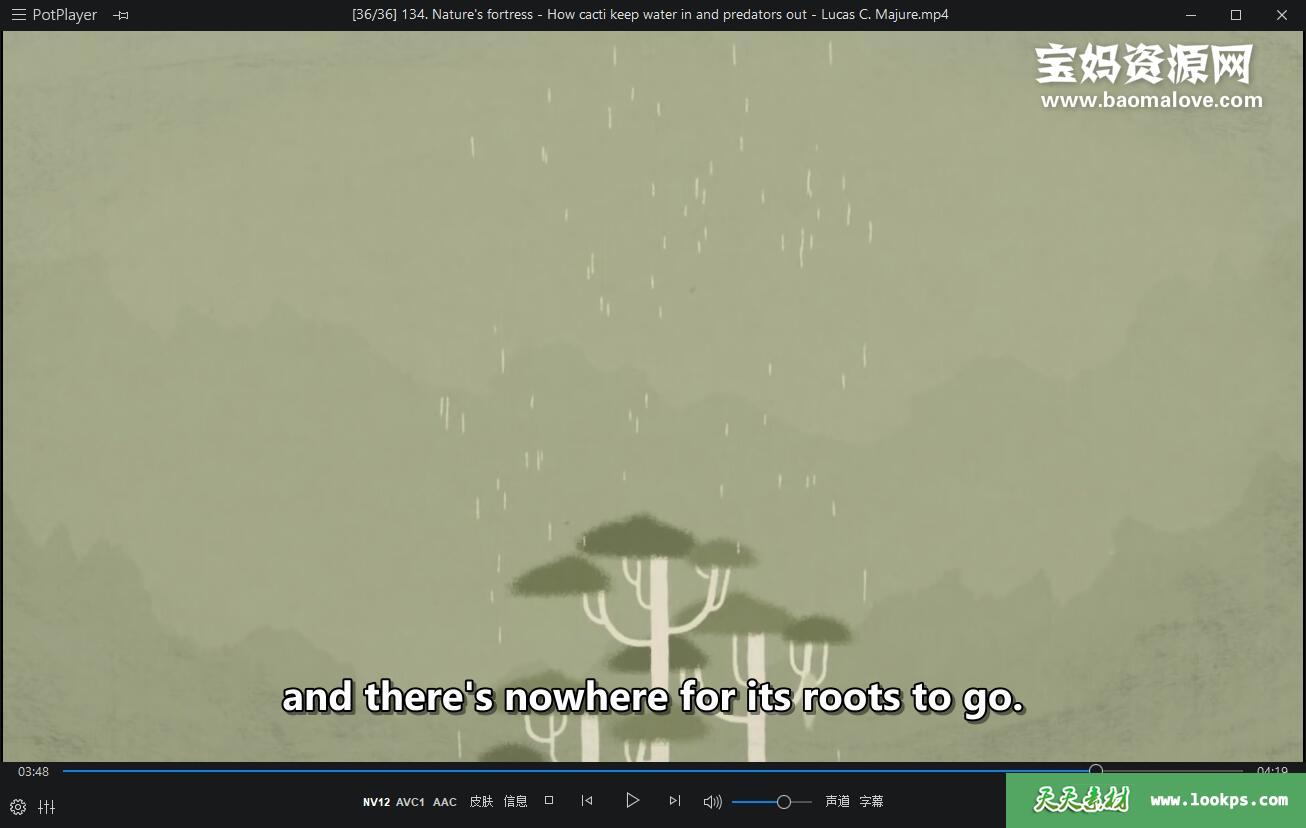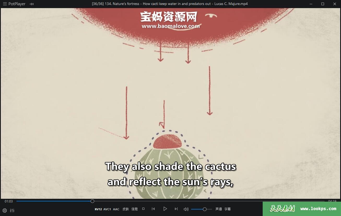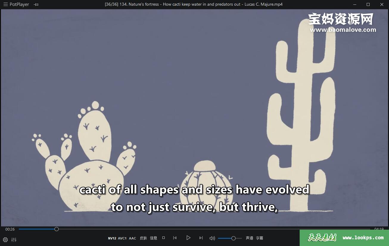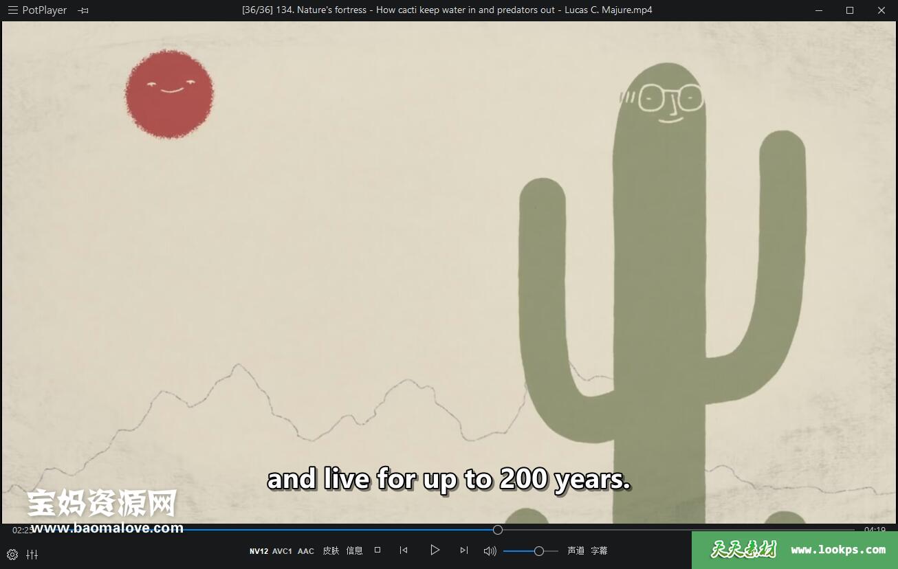 天天资源网收录的动画片《TED-Ed Awesome Nature》,全部134集,英语发音,外挂英文字幕;资源总大小约5.61G,单集播放时长约5分钟,1080P高清MP4视频格式,可以在电视机或电脑、平板、IPAD、早教机、手机等各种设备播放,提供百度云网盘下载。