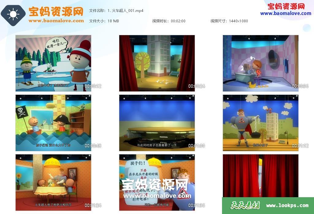 天天资源网收录的动画片《火车超人》Rolando Locomotov中文版,全部140集,国语发音,中文字幕;资源总大小约2.98G,单集播放时长约2分钟,1080P高清MP4视频格式,可以在电视机或电脑、平板、IPAD、早教机、手机等各种智能设备播放,提供百度云网盘下载。