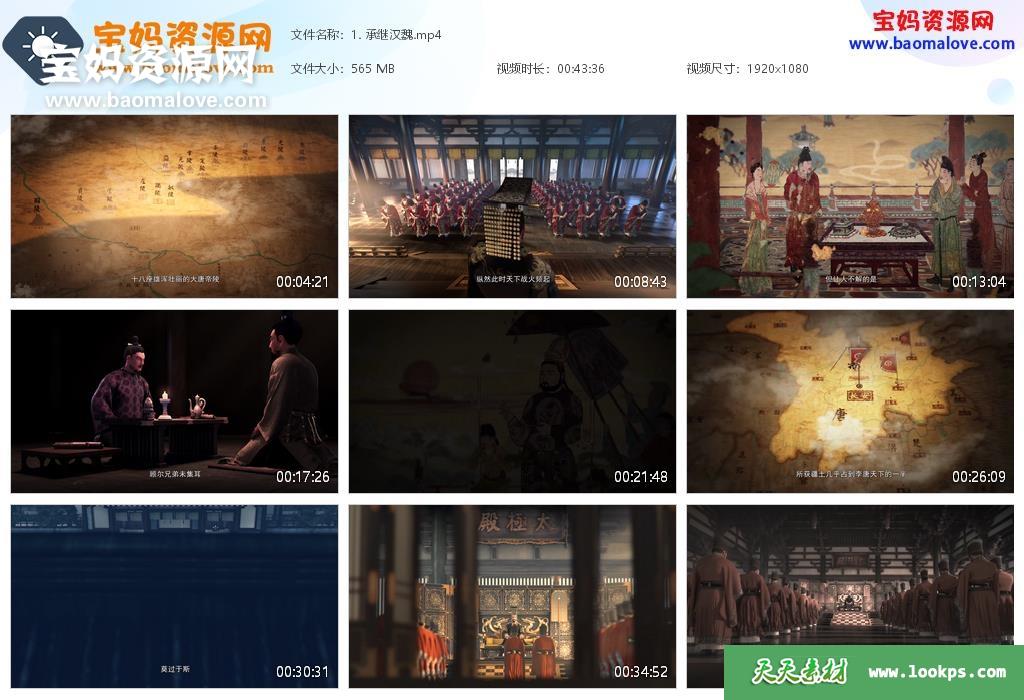 天天资源网收录的纪录片《大唐帝陵》,全部10集,国语发音,中文字幕;资源总大小约5.31G,单集播放时长约40分钟,1080P高清MP4视频格式,可以在电视机或电脑、平板、IPAD、早教机、手机等各种智能设备播放,提供百度云网盘下载。