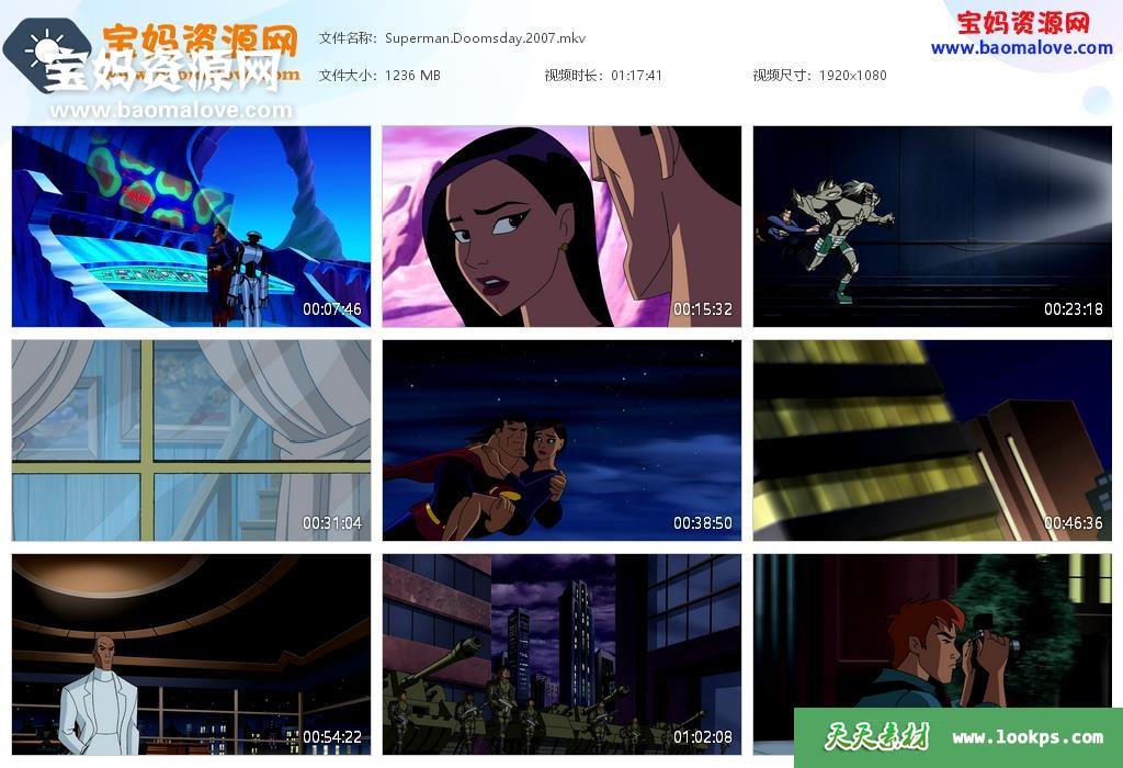 天天资源网收录的动画电影《超人:毁灭日 Superman Doomsday》,英语发音,内置英文字幕(可以下载后使用播放器设置字幕字体大小颜色或者关闭字幕);资源大小约1.2G,1080P高清MKV视频格式,可以在电视机或电脑、平板、IPAD、早教机、手机等各种智能设备播放,提供百度云网盘下载。