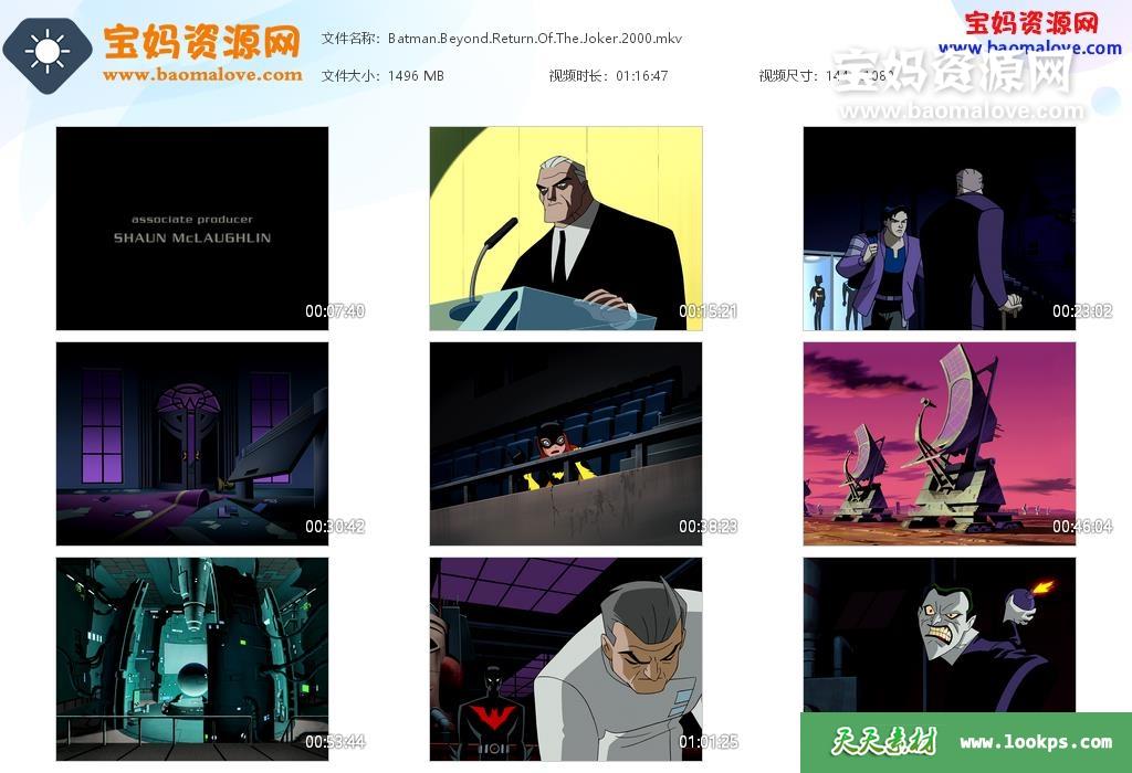 天天资源网收录的动画电影《未来蝙蝠侠:小丑归来 Batman Beyond: Return of the Joker》,英语发音,内置英文字幕(可以下载后使用播放器设置字幕字体大小颜色或者关闭字幕);资源大小约1.46G,1080P高清MKV视频格式,可以在电视机或电脑、平板、IPAD、早教机、手机等各种智能设备播放,提供百度云网盘下载。