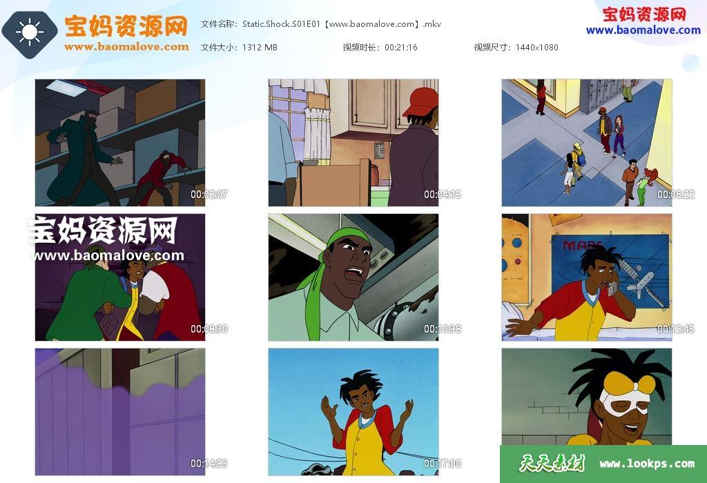 天天资源网收录的动画片《Static Shock》静电侠英文版 第一季,全部13集,英语发音,内置英文字幕(可以下载后使用播放器选择设置字幕或者关闭字幕);资源总大小16.58G,单集播放时长约21分钟,1080P高清MKV视频格式,可以在电视机或电脑、平板、IPAD、早教机、手机等各种智能设备播放,提供百度云网盘下载。