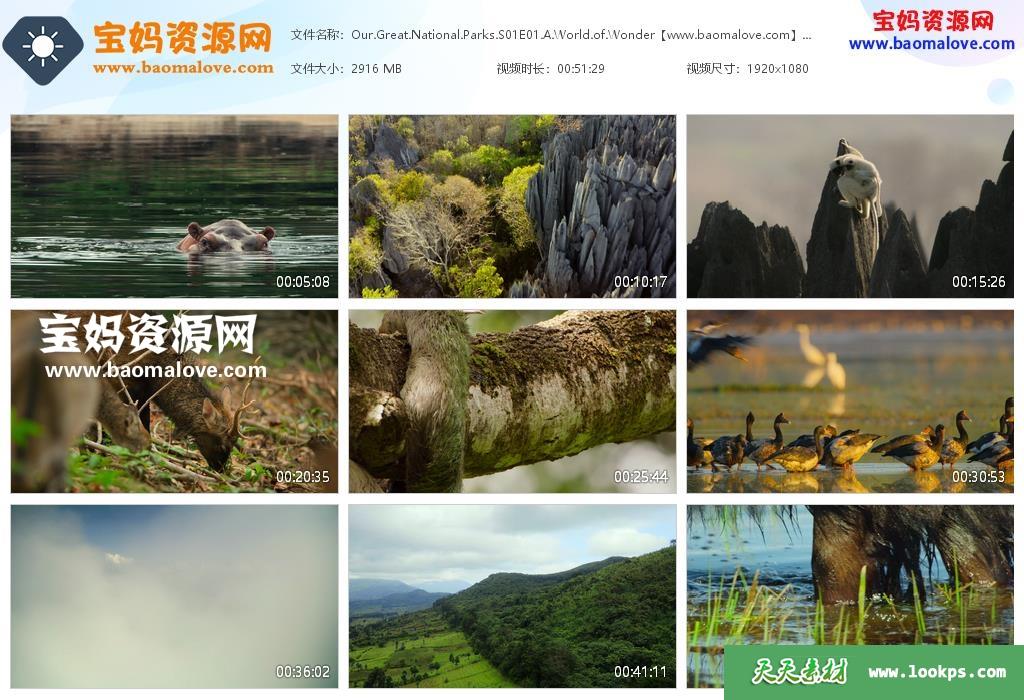 天天资源网收录的纪录片《全球绝美国家公园 Our Great National Parks》第一季,全部5集,英语发音,内置英文字幕(内置多国语言字幕,简体中文,繁体中文,阿拉伯文,捷克文,丹麦文,德文,希腊文,西班牙文,芬兰文,法文,希伯来文,克罗地亚文,匈牙利文,印度尼西亚文,意大利文,日文,韩文,马来文,挪威文,荷兰文,波兰文,葡萄牙文,罗马尼亚文,俄文,瑞典文,泰文,土耳其文,乌克兰文,越南文……可以下载后使用播放器选择字幕或者关闭字幕);资源总大小14.1G,单集播放时长约52分钟,1080P高清MKV视频格式,可以在电视机或电脑、平板、IPAD、早教机、手机等各种智能设备播放,提供百度云网盘下载。