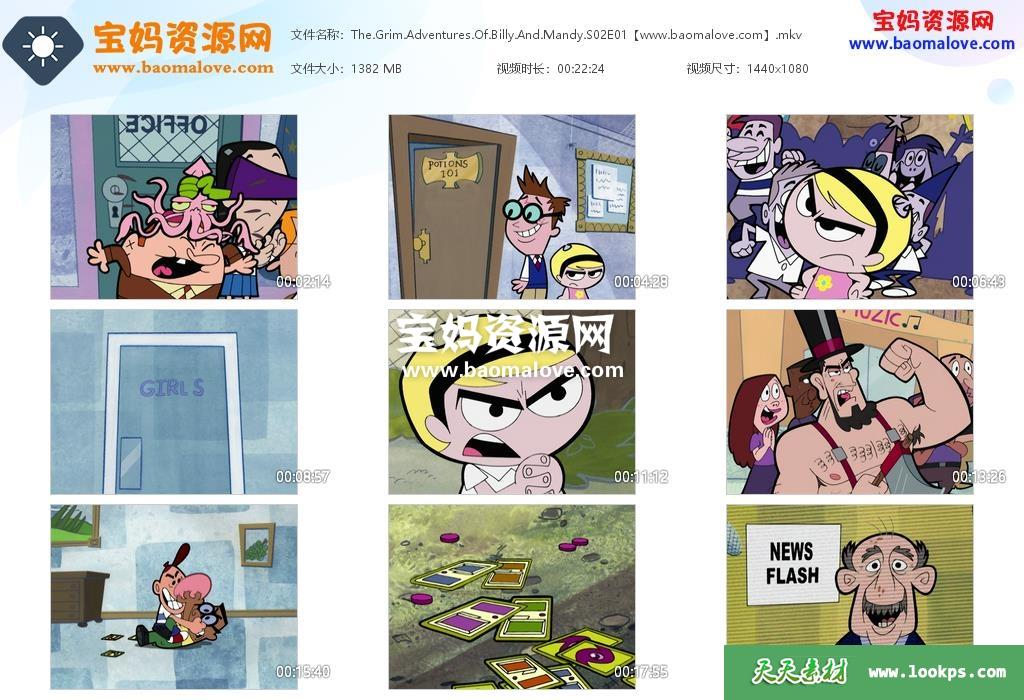 天天资源网收录的动画片《The Grim Adventures of Billy and Mandy》比利曼蒂和死神的大冒险英文版 第二季,全部9集,英语发音,内置英文字幕(可以下载后使用播放器选择设置字幕或者关闭字幕);资源总大小12G,单集播放时长约22分钟,1080P高清MKV视频格式,可以在电视机或电脑、平板、IPAD、早教机、手机等各种智能设备播放,提供百度云网盘下载。