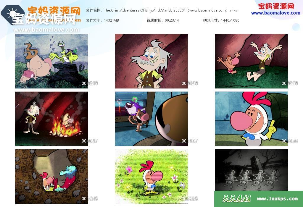 天天资源网收录的动画片《The Grim Adventures of Billy and Mandy》比利曼蒂和死神的大冒险英文版 第六季,全部13集,英语发音,内置英文字幕(可以下载后使用播放器选择设置字幕或者关闭字幕);资源总大小17.9G,单集播放时长约22分钟,1080P高清MKV视频格式,可以在电视机或电脑、平板、IPAD、早教机、手机等各种智能设备播放,提供百度云网盘下载。