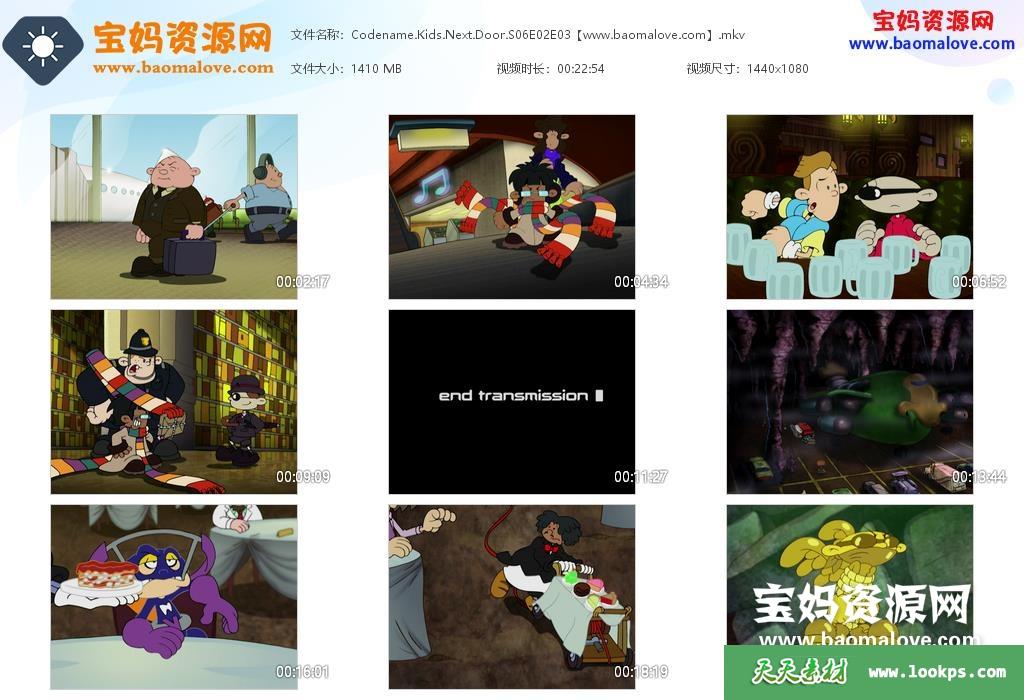 天天资源网收录的动画片《Codename: Kids Next Door》小孩大联盟英文版 第六季,全部21集,英语发音,内置英文字幕(可以下载后使用播放器选择设置字幕或者关闭字幕);资源总大小17.9G,单集播放时长约11分钟,1080P高清MKV视频格式,可以在电视机或电脑、平板、IPAD、早教机、手机等各种智能设备播放,提供百度云网盘下载。
