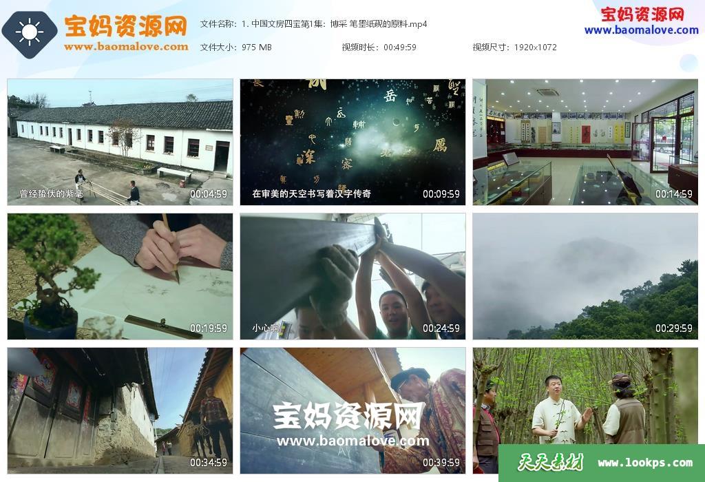 天天资源网收录的纪录片《中国文房四宝》,全部6集,国语发音,中文字幕;资源总大小约5.17G,单集播放时长约50分钟,1080P高清MP4视频格式,可以在电视机或电脑、平板、IPAD、早教机、手机等各种智能设备播放,提供百度云网盘下载。