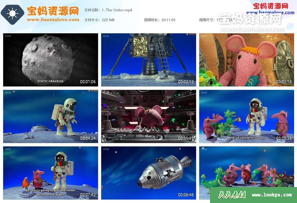 天天资源网收录的动画片《Clangers》太空鼠一家英文版 第三季,全部26集,英语发音,英文字幕;资源总大小约5.79G,单集播放时长约11分钟,1080P高清MP4视频格式,可以在电视机或电脑、平板、IPAD、早教机、手机等各种智能设备播放,提供百度云网盘下载。