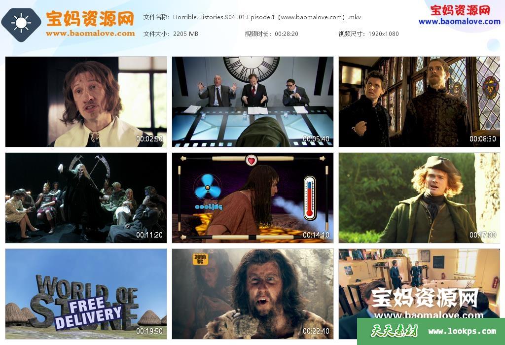 天天资源网收录的电视剧《Horrible Histories》糟糕历史英文版 第四季,全部13集,英语发音,无字幕;资源总大小约27.3G,单集播放时长约28分钟,1080P高清MKV视频格式,可以在电视机或电脑、平板、IPAD、早教机、手机等各种智能设备播放,提供百度云网盘下载。