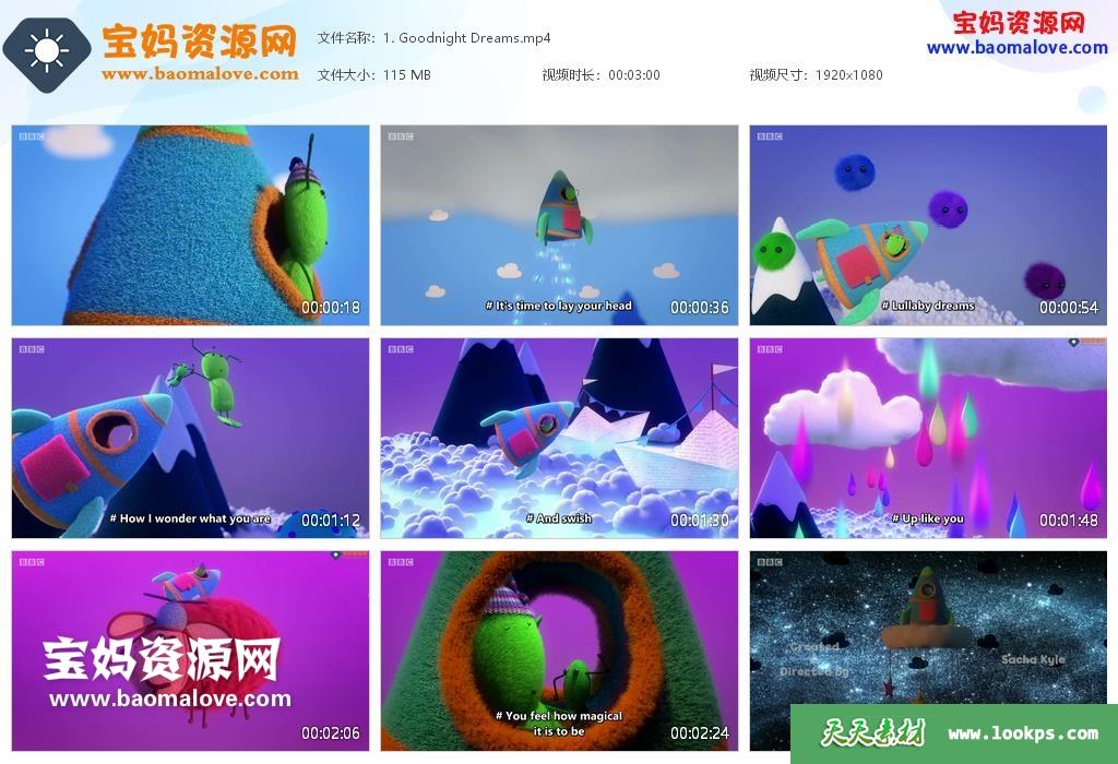 天天资源网收录的动画片《Hushabye Lullabye》乖乖睡摇篮曲英文版 第一季,全部10集,英语发音,英文字幕;资源总大小约1.32G,单集播放时长约3分钟,1080P高清MP4视频格式,可以在电视机或电脑、平板、IPAD、早教机、手机等各种智能设备播放,提供百度云网盘下载。