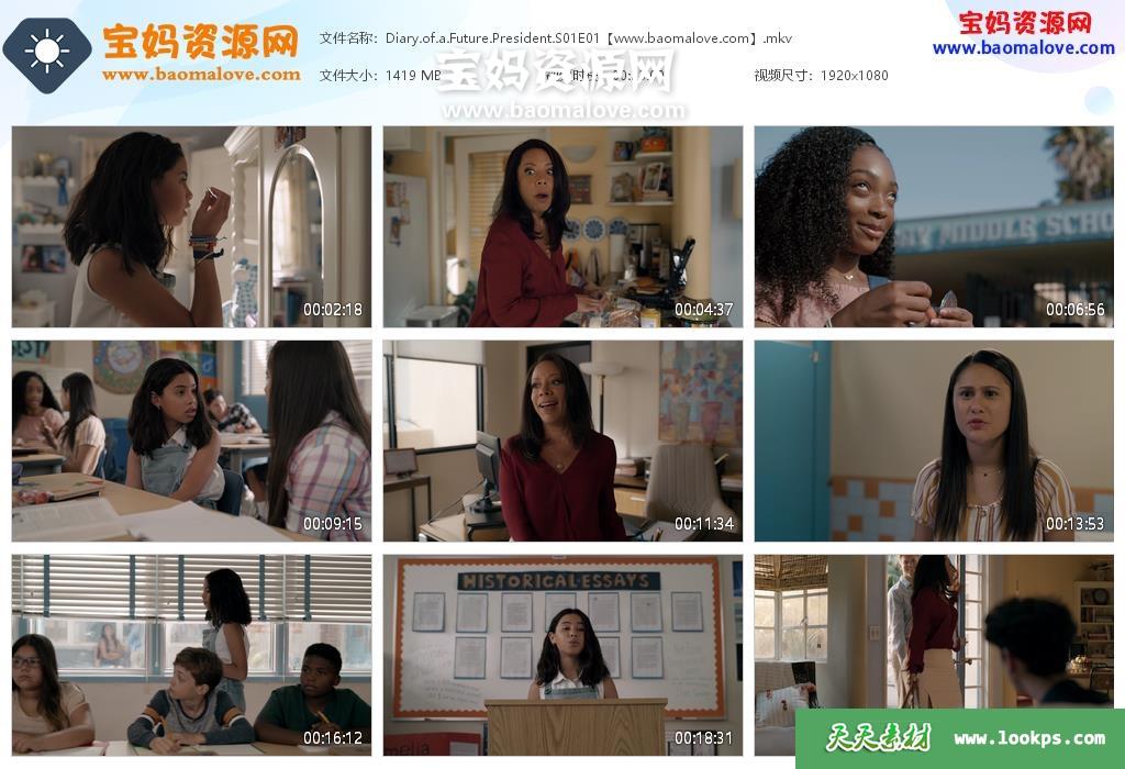 天天资源网收录的电视剧《Diary of a Future President》未来总统日记英文版 第一季,全部10集,英语发音,内置英文字幕(可以下载后使用播放器选择设置字幕或者关闭字幕);资源总大小约15.3G,单集播放时长约22~28分钟,1080P高清MKV视频格式,可以在电视机或电脑、平板、IPAD、早教机、手机等各种智能设备播放,提供百度云网盘下载。