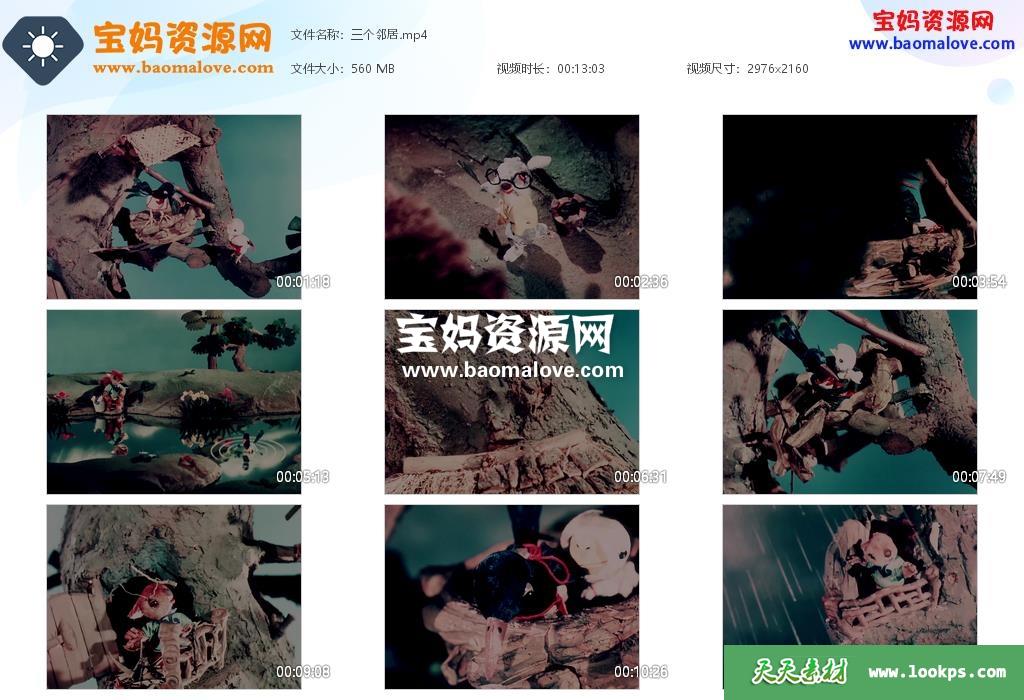 天天资源网收录的动画电影《三个邻居》,国语发音,无字幕;资源大小约560M,播放时长约12分钟,4K高清MP4格式,可以在电视机或电脑、平板、IPAD、早教机、手机等各种设备播放,提供百度云网盘下载。