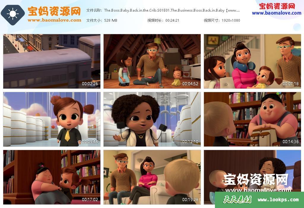 天天资源网收录的动画片《The Boss Baby: Back in the Crib》宝贝老板:返宝还童英文版 第一季,全部12集,英语发音,内置英文字幕(内置多国语言字幕,如简体中文,繁体中文,阿拉伯文,捷克文,丹麦文,德文,希腊文,西班牙文,芬兰文,法文,希伯来文,克罗地亚文,匈牙利文,印度尼西亚文,意大利文,日文,韩文,马来文,挪威文,荷兰文,波兰文,葡萄牙文,罗马尼亚文,俄文,瑞典文,泰文,土耳其文,乌克兰文,越南文…可以下载后使用播放器选择字幕或者关闭切换字幕);资源总大小约6.52G,单集播放时长约25分钟,1080P高清MKV视频格式,可以在电视机或电脑、平板、IPAD、早教机、手机等各种智能设备播放,提供百度云网盘下载。