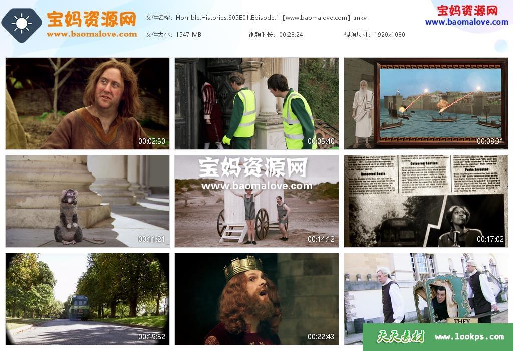 天天资源网收录的电视剧《Horrible Histories》糟糕历史英文版 第五季,全部13集,英语发音,内置英文字幕(可以下载后使用播放器选择设置字幕或者关闭切换字幕);资源总大小约18.59G,单集播放时长约28分钟,1080P高清MKV视频格式,可以在电视机或电脑、平板、IPAD、早教机、手机等各种智能设备播放,提供百度云网盘下载。