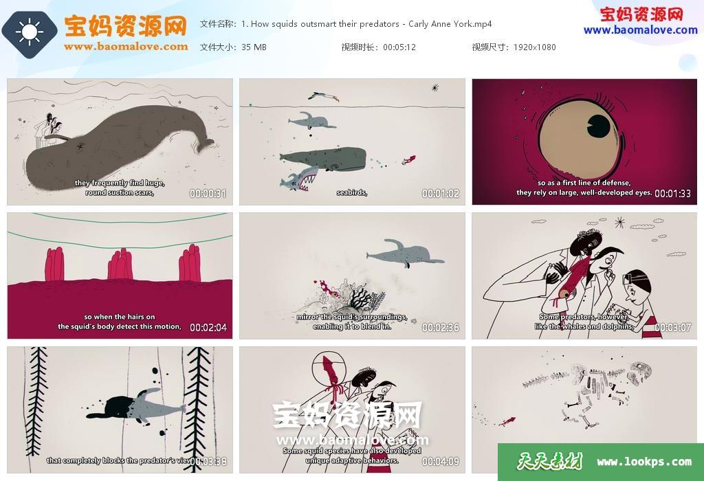 TED-Ed Discovering the Deep 探索海洋深处,金枪鱼,水母,鱿鱼,鲸鱼,海龟,海狮等。