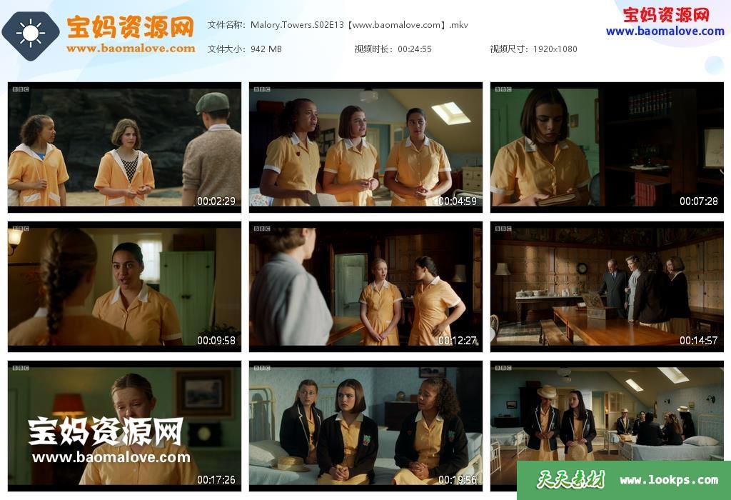 天天资源网收录的电视剧《Malory Towers》马洛里之塔英文版 第二季,全部13集,英语发音,内置英文字幕(可以下载后使用播放器选择设置字幕或者关闭字幕);资源总大小约11.3G,单集播放时长约24分钟,1080P高清MKV视频格式,可以在电视机或电脑、平板、IPAD、早教机、手机等各种智能设备播放,提供百度云网盘下载。