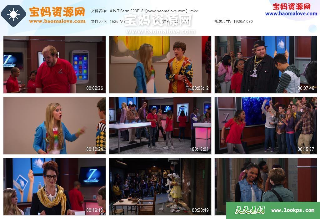 天天资源网收录的电视剧《A.N.T. Farm》奇才工坊英文版 第三季,全部18集,英语发音,内置英文字幕(内置多国语言字幕,如德文,法文,意大利文,韩文,葡萄牙文,芬兰文……可以下载后使用播放器选择设置字幕或者关闭切换字幕);资源总大小约25.7G,单集播放时长约23分钟,1080P高清MKV视频格式,可以在电视机或电脑、平板、IPAD、早教机、手机等各种智能设备播放,提供百度云网盘下载。