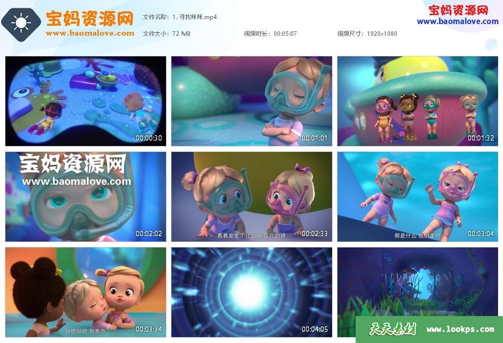 天天资源网收录的动画片《Bloopies》魔法泡泡美人鱼英文版 第一季,全部13集,英语发音,中文字幕;资源总大小约770M,单集播放时长约5分钟,1080P高清MP4视频格式,可以在电视机或电脑、平板、IPAD、早教机、手机等各种智能设备播放,提供百度云网盘下载。