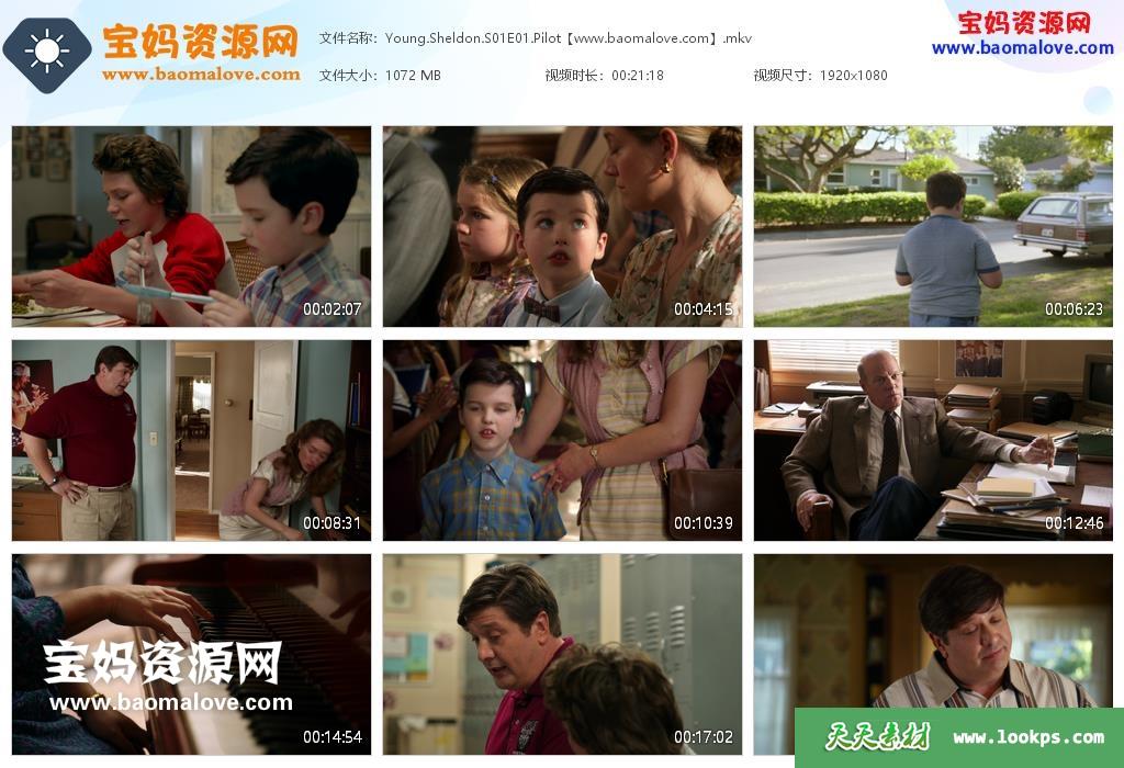 天天资源网收录的电视剧《Young Sheldon》小谢尔顿英文版 第一季,全部22集,英语发音,内置英文字幕(可以下载后使用播放器选择设置字幕或者关闭切换字幕);资源总大小约31.4G,单集播放时长约20分钟,1080P高清MKV视频格式,可以在电视机或电脑、平板、IPAD、早教机、手机等各种智能设备播放,提供百度云网盘下载。
