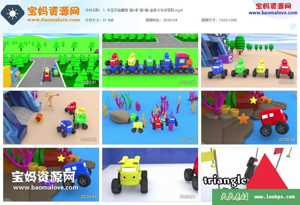 天天资源网收录的动画片《车宝贝益趣屋》第六季,全部20集,无对白,无字幕;资源总大小约892M,单集播放时长约6分钟,1080P高清MP4视频格式,可以在电视机或电脑、平板、IPAD、早教机、手机等各种智能设备播放,提供百度云网盘下载。