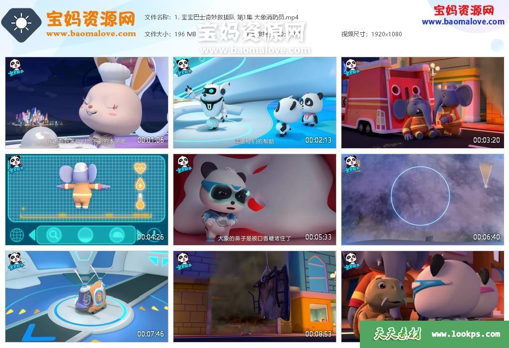 天天资源网收录的动画片《宝宝巴士奇妙救援队》,全部11集,国语发音,中文字幕;资源总大小约1.33G,单集播放时长约10分钟,1080P高清MP4视频格式,可以在电视机或电脑、平板、IPAD、早教机、手机等各种智能设备播放,提供百度云网盘下载。