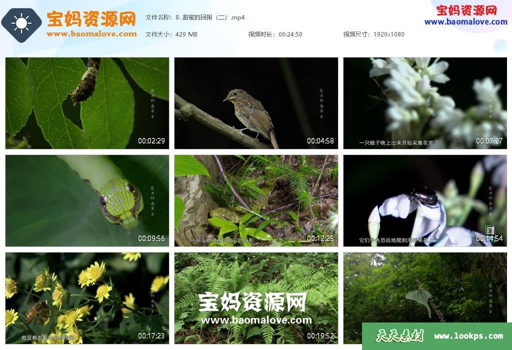 天天资源网收录的纪录片《昆虫的盛宴》,全部8集,国语发音,中文字幕;资源总大小约3.43G,单集播放时长约25分钟,1080P高清MP4视频格式,可以在电视机或电脑、平板、IPAD、早教机、手机等各种智能设备播放,提供百度云网盘下载。