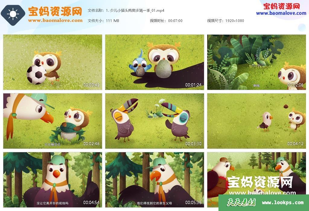 天天资源网收录的动画片《小猫头鹰奥多》Odo中文版 第一季,全部26集,国语发音,中文字幕;资源总大小约2.28G,单集播放时长约7分钟,1080P高清MP4视频格式,可以在电视机或电脑、平板、IPAD、早教机、手机等各种智能设备播放,提供百度云网盘下载。