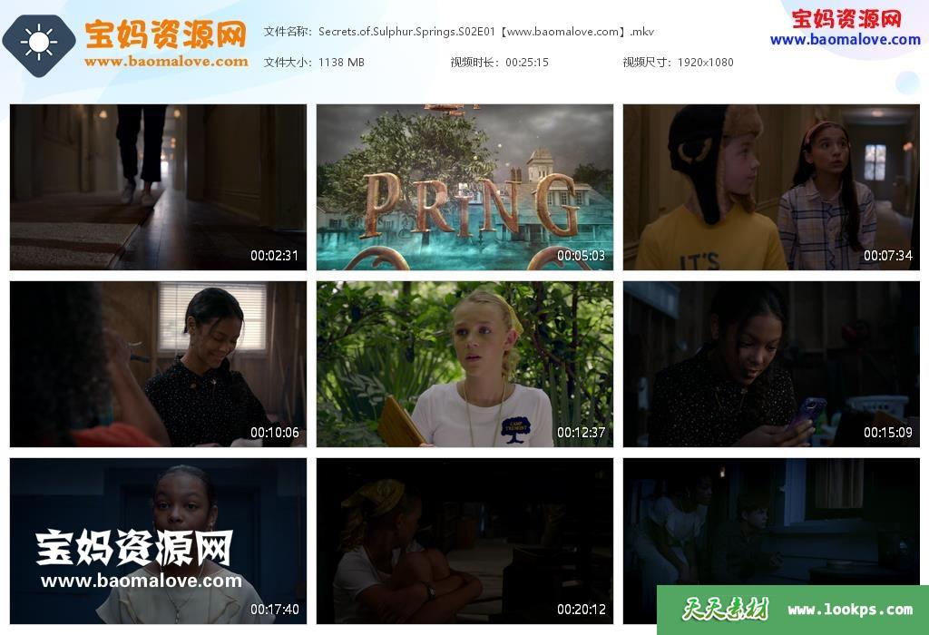 天天资源网收录的电视剧《硫磺泉镇的秘密 Secrets of Sulphur Springs》第二季,全部8集,英语发音,内置英文字幕(可以下载后使用播放器选择设置字幕或者关闭切换字幕);资源总大小约8.32G,单集播放时长约25分钟,1080P高清MKV视频格式,可以在电视机或电脑、平板、IPAD、早教机、手机等各种智能设备播放,提供百度云网盘下载。