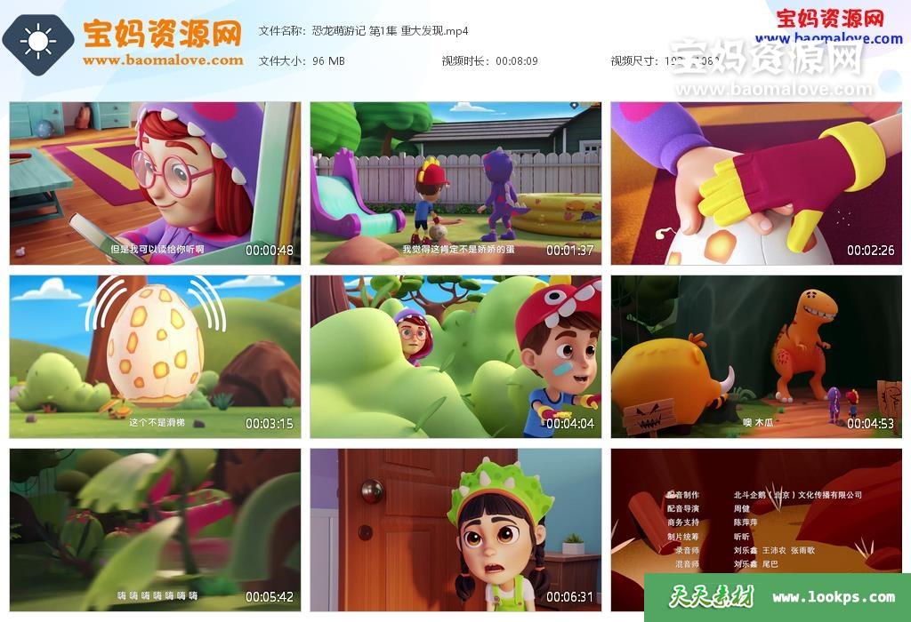 天天资源网收录的动画片《恐龙萌游记》Baby Dino Tales中文版 第一季,全部26集,国语发音,中文字幕;资源总大小约1.9G,单集播放时长约8分钟,1080P高清MP4视频格式,可以在电视机或电脑、平板、IPAD、早教机、手机等各种智能设备播放,提供百度云网盘下载。