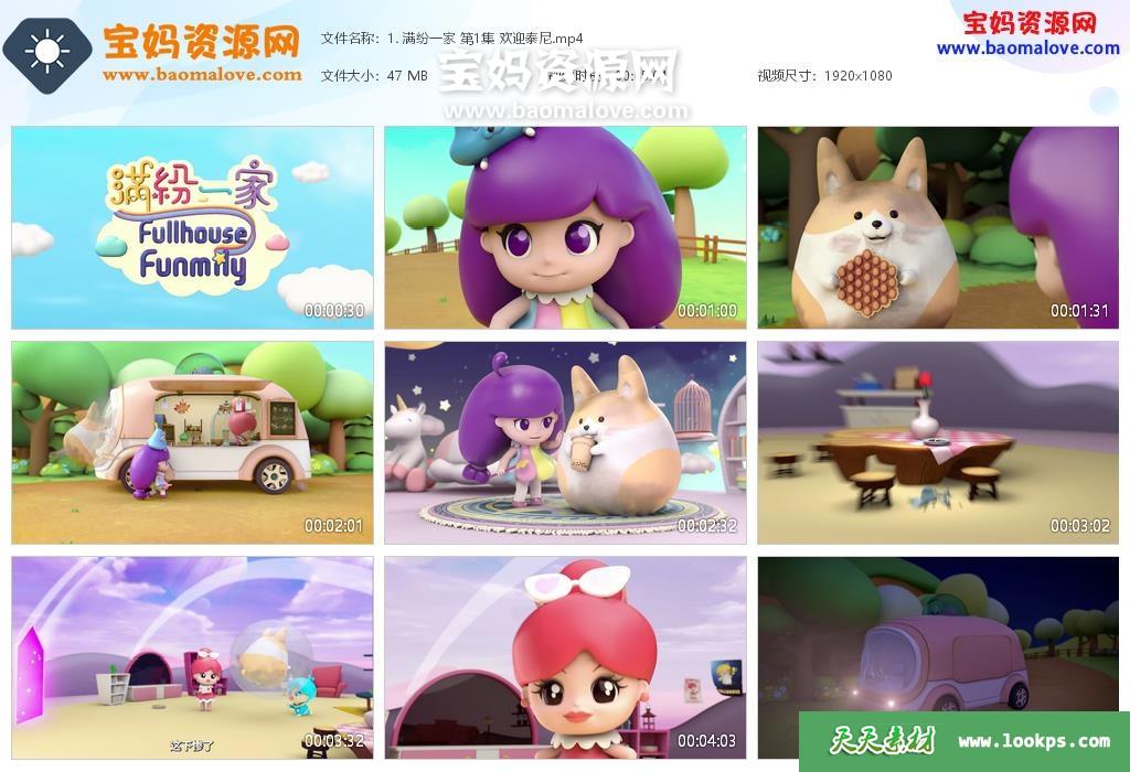 天天资源网收录的动画片《满纷一家》,全部10集,国语发音,中文字幕;资源总大小约349M,单集播放时长约3~5分钟,1080P高清MP4视频格式,可以在电视机或电脑、平板、IPAD、早教机、手机等各种设备播放,提供百度云网盘下载。