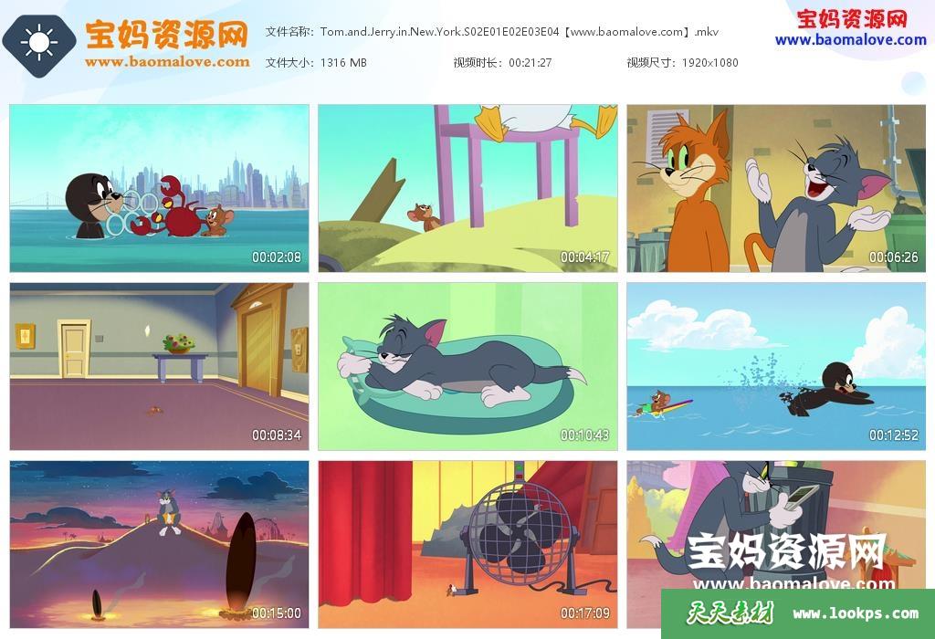 天天资源网收录的动画片《Tom and Jerry in New York》猫和老鼠在纽约英文版 第二季,全部6集,英语发音,内置英文字幕(内置多国字幕:西班牙文,葡萄牙文,可以下载后使用播放器选择设置字幕或者关闭切换字幕);资源总大小约7.49G,单集播放时长约21分钟,1080P高清MKV视频格式,可以在电视机或电脑、平板、IPAD、早教机、手机等各种智能设备播放,提供百度云网盘下载。