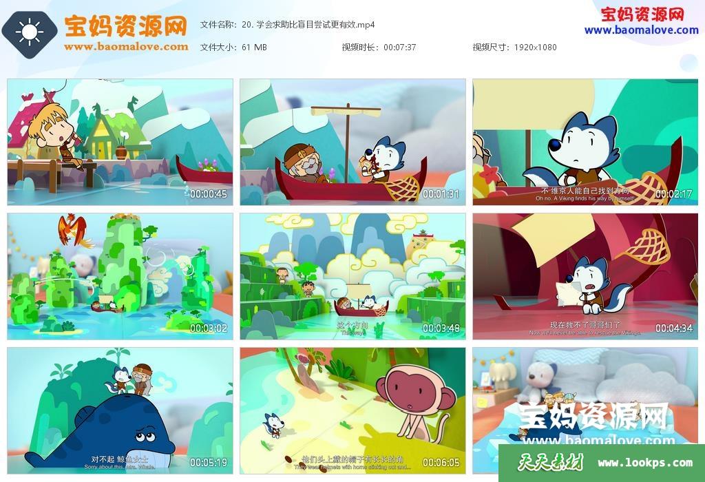 天天资源网收录的动画片《小狼乐宾 趣成长》英文版,全部20集,英语发音,中英文字幕;资源总大小1.38G,单集播放时长约7分钟,1080P高清MP4视频格式,可以在电视机或电脑、平板、IPAD、早教机、手机等各种智能设备播放,提供百度云网盘下载。