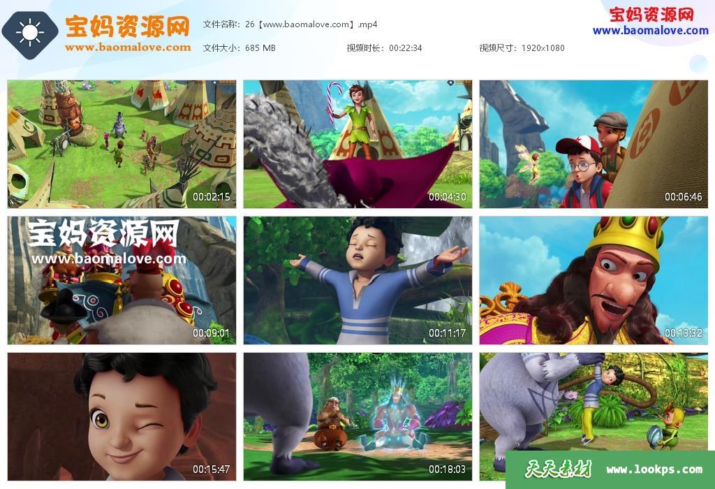 天天资源网收录的动画片《The New Adventures of Peter Pan》小飞侠彼得潘英文版 第二季,全部26集,英语发音,无字幕;资源总大小约15.6G,单集播放时长约22分钟,1080P高清MP4视频格式,可以在电视机或电脑、平板、IPAD、早教机、手机等各种智能设备播放,提供百度云网盘下载。