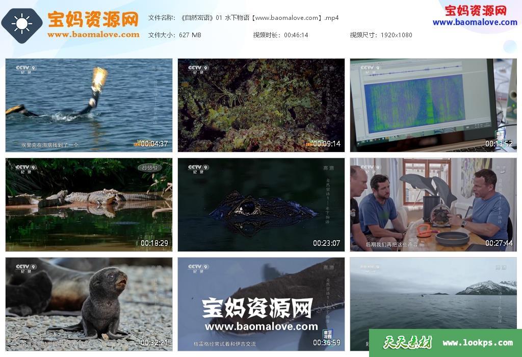 天天资源网收录的纪录片《自然密语 Sounds of Nature》,全部3集,国语发音,中文字幕;资源总大小约1.99G,单集播放时长约47分钟,1080P高清MP4视频格式,可以在电视机或电脑、平板、IPAD、早教机、手机等各种智能设备播放,提供百度云网盘下载。