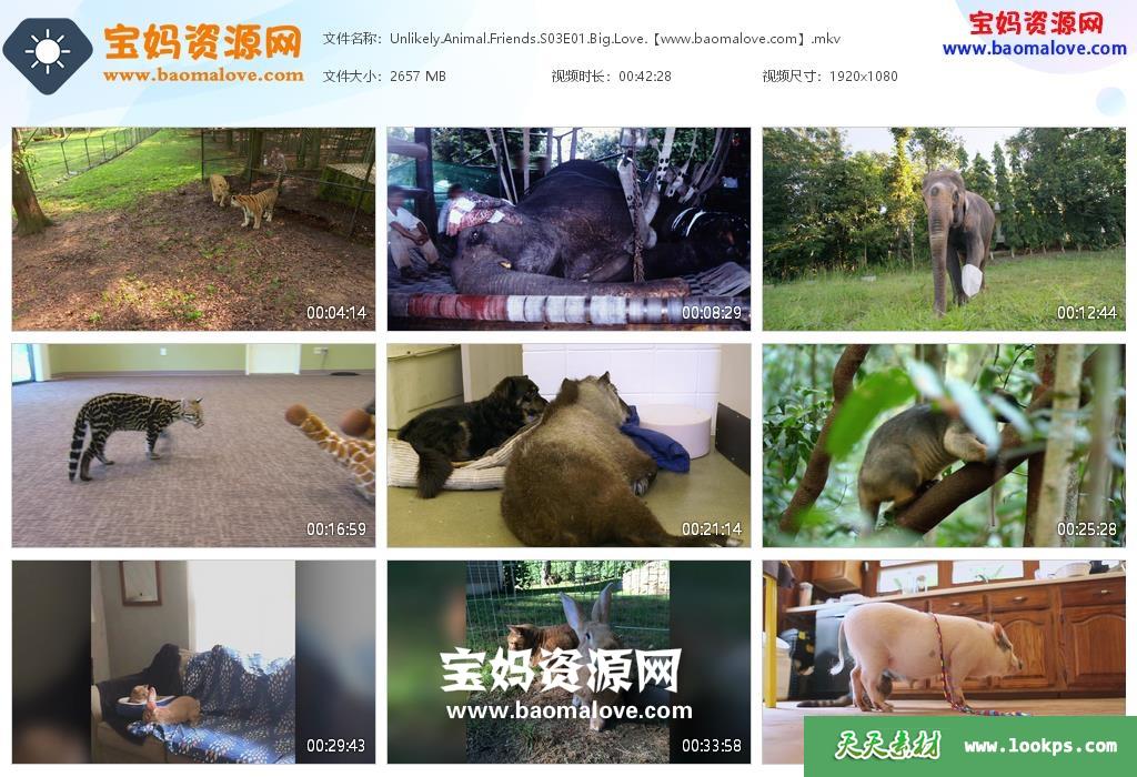 天天资源网收录的纪录片《不可思议的好朋友 Unlikely Animal Friends》第三季,全部6集,英语发音,内置英文字幕(内置多国语言字幕,简体中文,繁体中文,捷克文,丹麦文,希腊文,西班牙文,芬兰文,匈牙利文,韩文,荷兰文,挪威文,波兰文,葡萄牙文,罗马尼亚文,瑞典文,土耳其文……可以下载后使用播放器选择字幕或者关闭字幕);资源总大小15.6G,单集播放时长约43分钟,1080P高清MKV视频格式,可以在电视机或电脑、平板、IPAD、早教机、手机等各种智能设备播放,提供百度云网盘下载。