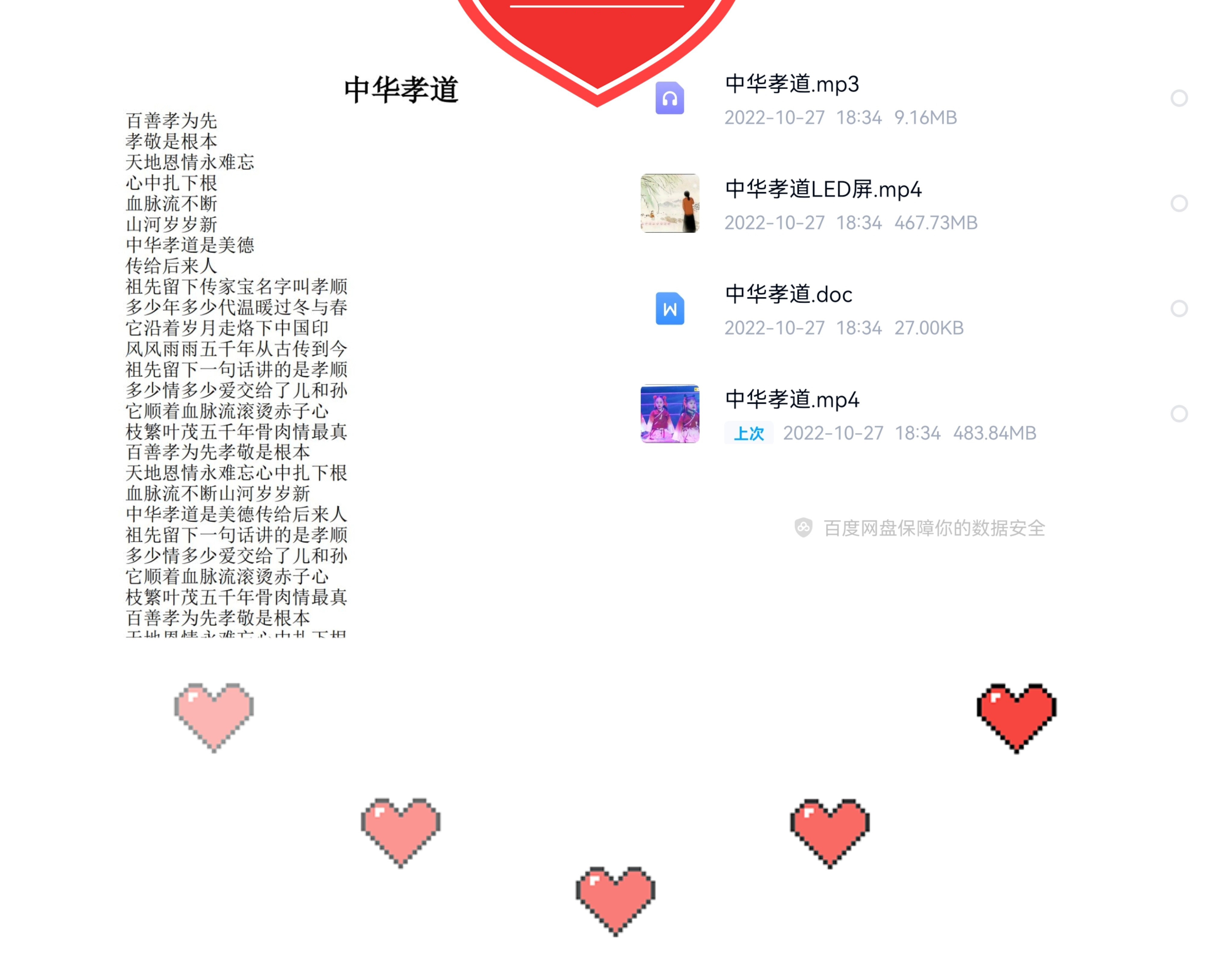 以上为《中华孝道》的详细介绍,完整一套资源包含:表演视频+背景音乐+LED屏背景视频+完整精编剧本