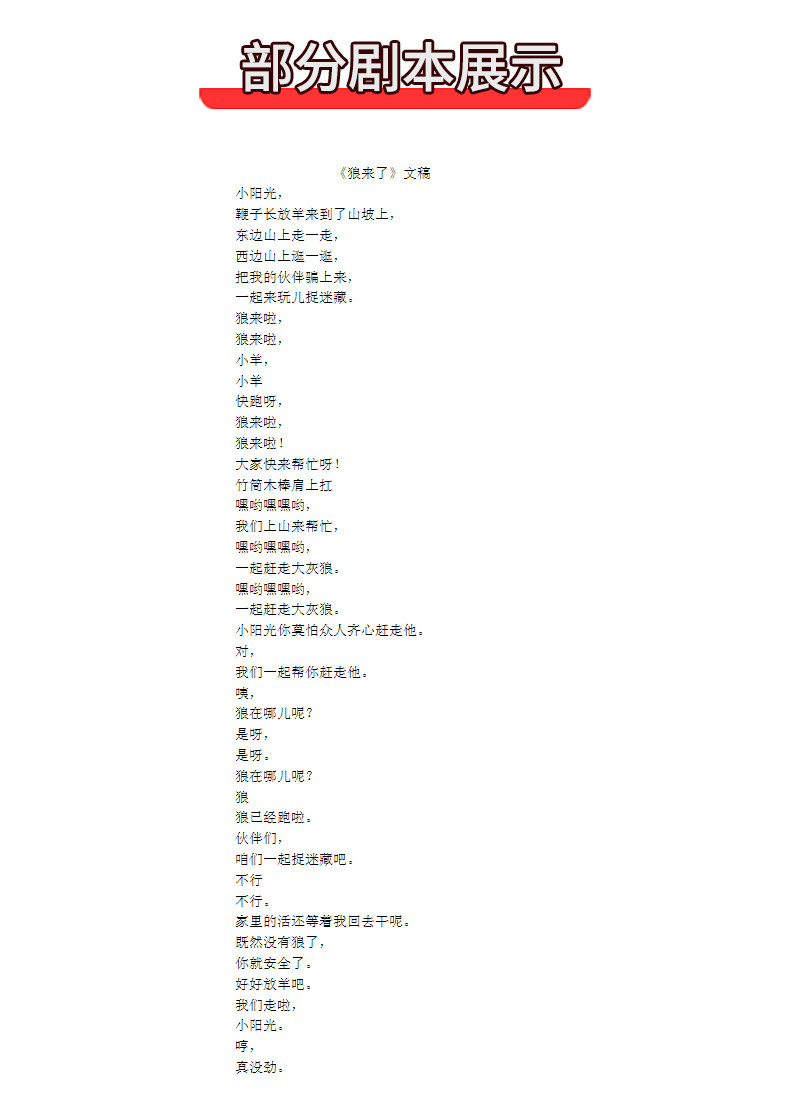 儿童课本剧 狼来了 演出案例背景视频LED伴奏音乐剧本台词舞台剧 课本剧 14 资源下载资源下载价格15元立即支付 或 升级VIP后免费升级VIP 资源下载价格15元立即支付 或 升级VIP后免费立即升级 0 分享到:
