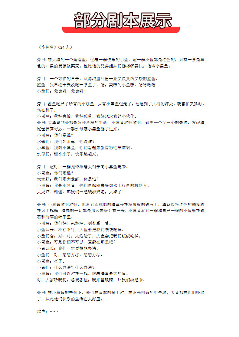 儿童剧 小黑鱼 演出案例led背景视频伴奏音乐MP3剧本台词文档 课本剧 13 资源下载资源下载价格15元立即支付 或 升级VIP后免费升级VIP 资源下载价格15元立即支付 或 升级VIP后免费立即升级 0 分享到: