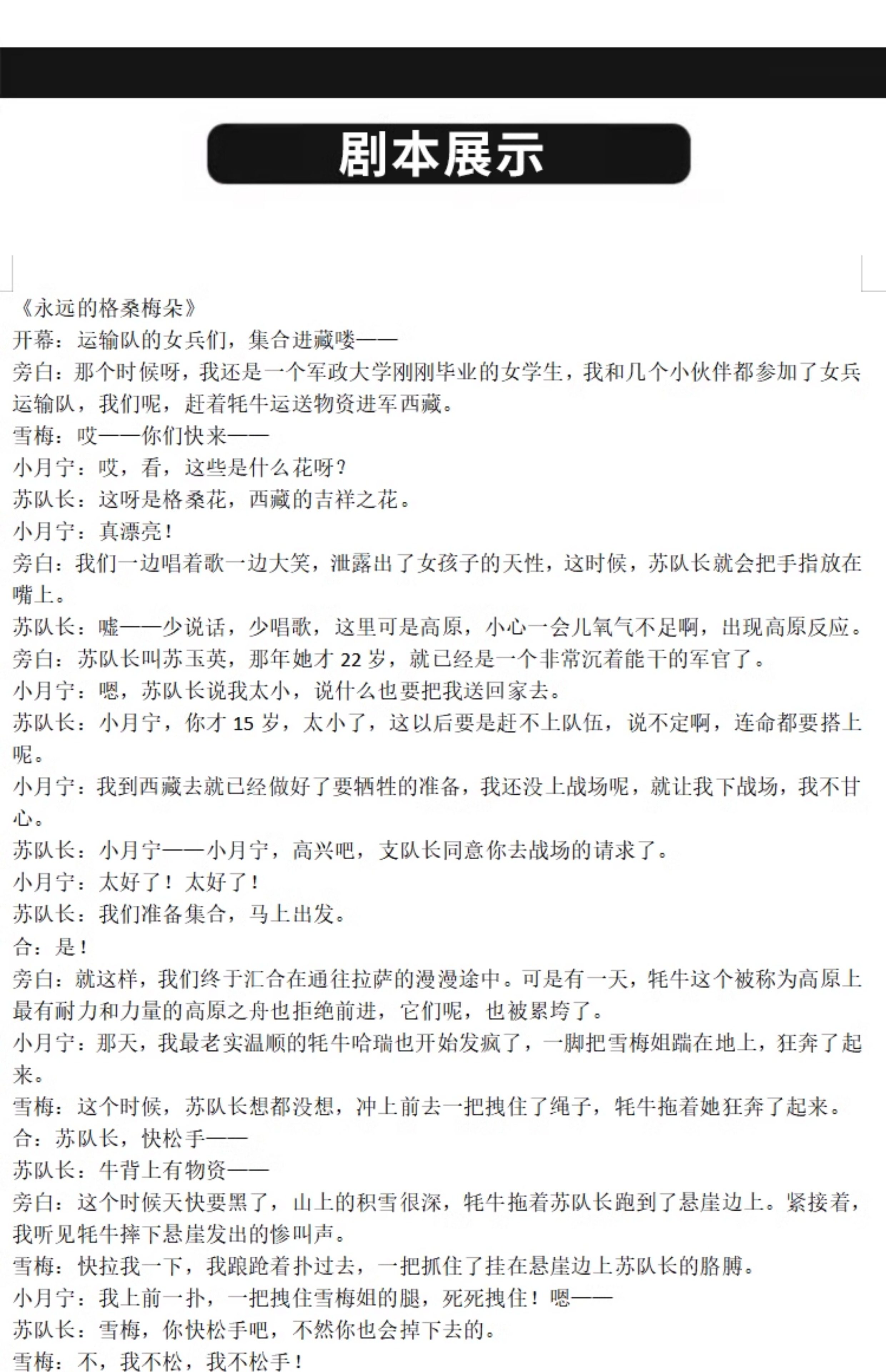 儿童剧永远的格桑梅朵 演出案例led背景视频伴奏配纯音乐剧本台词 讲故事 13 资源下载资源下载价格15元立即支付 或 升级VIP后免费升级VIP 资源下载价格15元立即支付 或 升级VIP后免费立即升级 0 分享到: